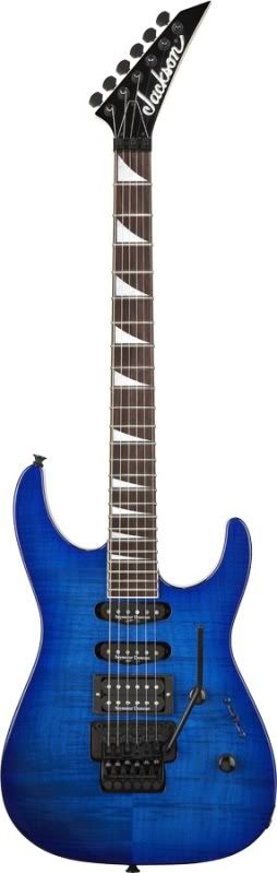 Finalmente l'ho presa!\nIeri l'ho trovata ad un prezzo ottimo e dopo averla provata me la sono portata via!\n\n[img]http://i6.photobucket.com/albums/y217/K ... erblog.jpg[/img]\n\nLe caratteristiche:\nBody: Alder with Flame Maple Veneer on Transparent Colors \nNeck: Bolt-On Rock Maple with Scarf Joint Head Stock \nNeck Dimensions: 1st Fret: .735”, 12th Fret: .810” \nTuning Machines: Sealed Die-Cast Tuners\nFingerboard: Rosewood with Compound 14” to 16” Radius \nNo. of Frets: 24 Jumbo Frets \nBridge Pickup: Seymour Duncan® JB™ TB4 Humbucking Pickup \nMiddle Pickup: Seymour Duncan® STK-1 Single-Coil \nNeck Pickup: Seymour Duncan® STK-1 Single-Coil \nControls: Master Volume, Master Tone\nBridge: Floyd Rose® Licensed Jackson® Low Profile JT580 LP Double Locking 2-Point Tremolo \nPickup Switching: 5-Position Blade\nHardware: Black\nStrings NPS, Gauges: .009, .011, .016, .024, .032, .042\nPickguard: None\nScale Length: 25.5” (648mm)\nWidth at Nut: 1-11/16” (43mm)\n\nUnique Features:\nJackson 6-In-Line Pointed Headstock,\nCompound (14” to 16”) Fingerboard Radius,\nMOTO Shark Fin Position Inlays, Ivoroid Binding on Neck and Headstock\n\nGià usata ieri alle prove e devo dire che mi devo abituare all'action così basso, ma sul pulito è fantastica, suono brillante e acuto come volevo (da affiancare alla Les Paul che invece è molto più cupo e corposo)!\n\nChi di voi ce l'ha simile (ho visto alcuni post in giro) ha dei consigli da darmi?\nIo pensavo di abbassarla di un tono lasciando le 0.09 - 0.42, ma il mio bassista dice che per farla fischiare di più mi conviene cambiare e passare a 0.10 - 0.46.