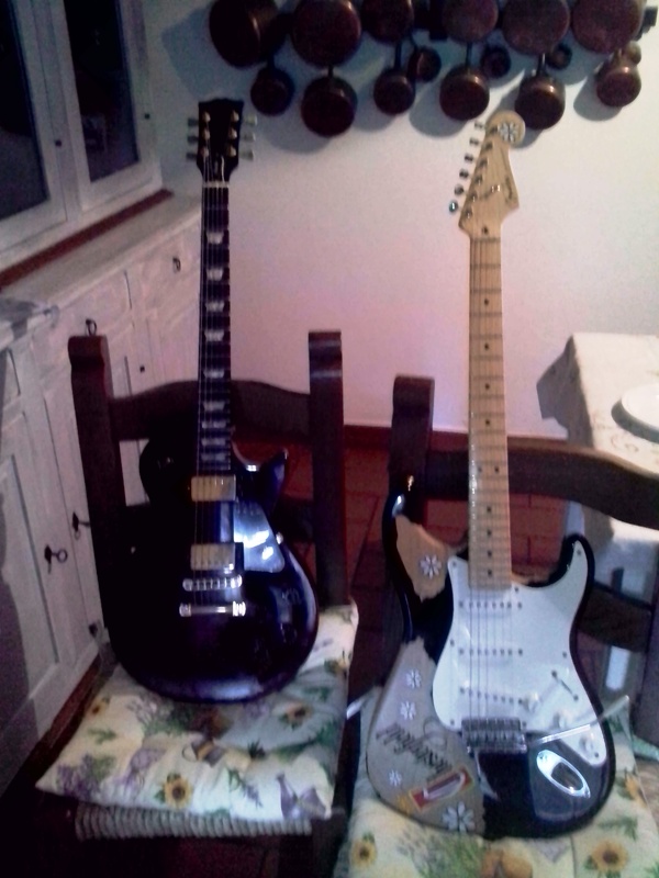 Fender Stratocaster American Standard, Gibson Les Paul Custom Black Beauty, Ibanez AEL-40SE, Testata Brunetti XL-REVO LTD, Casse Brunetti Customwork Cab 4x12 CW-412 e 2x12 CW-212, Roland Micro Cube, TC Polytune + TC Mojo Mojo Overdive + TC Hall of Fame Reverb + Voodoo Lab Analog Chorus + MXR Carbon Copy Delay\n\nChitarre che ho avuto: Fender Stratocaster Standard MEX, Ibanez RG-2550Z Prestige